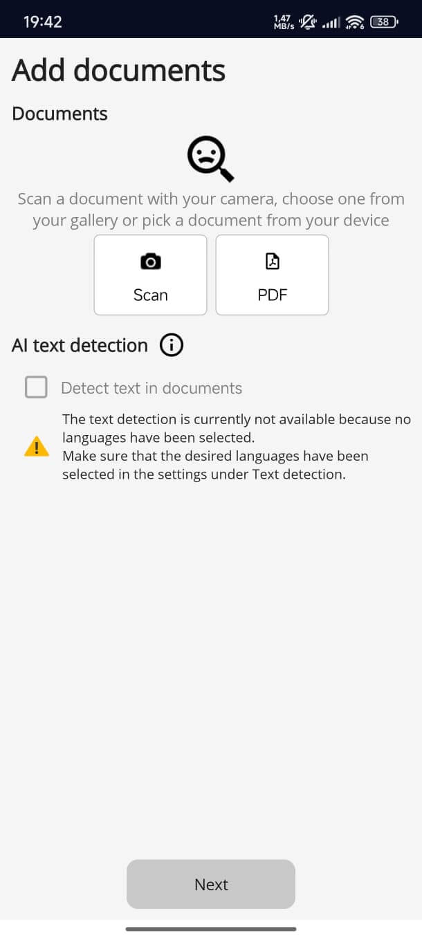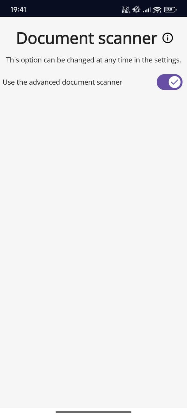 When adding a document for the first time, you can decide whether to use the advanced scanner (recommended) or the legacy one. This option can always be changed in the settings.