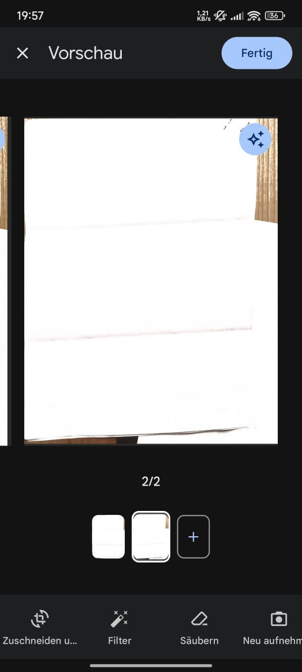 After scanning, visual enhancements are applied automatically. You can adjust the settings if needed and also scan more than one document at once. Use the done button to close the scanner.