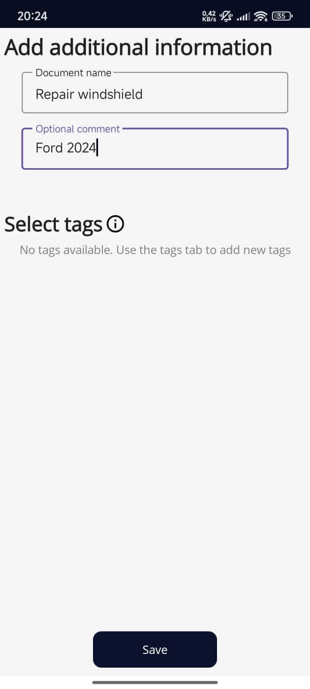 Similar to folders, documents have a name and an optional comment. Additionally, documents can be tagged. Refer to Tags for further information.