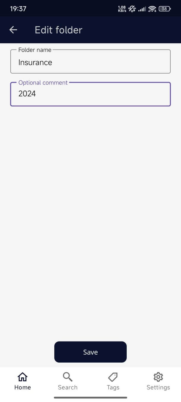 Besides the name, you can also enter a comment to further clarify the content of the folder.