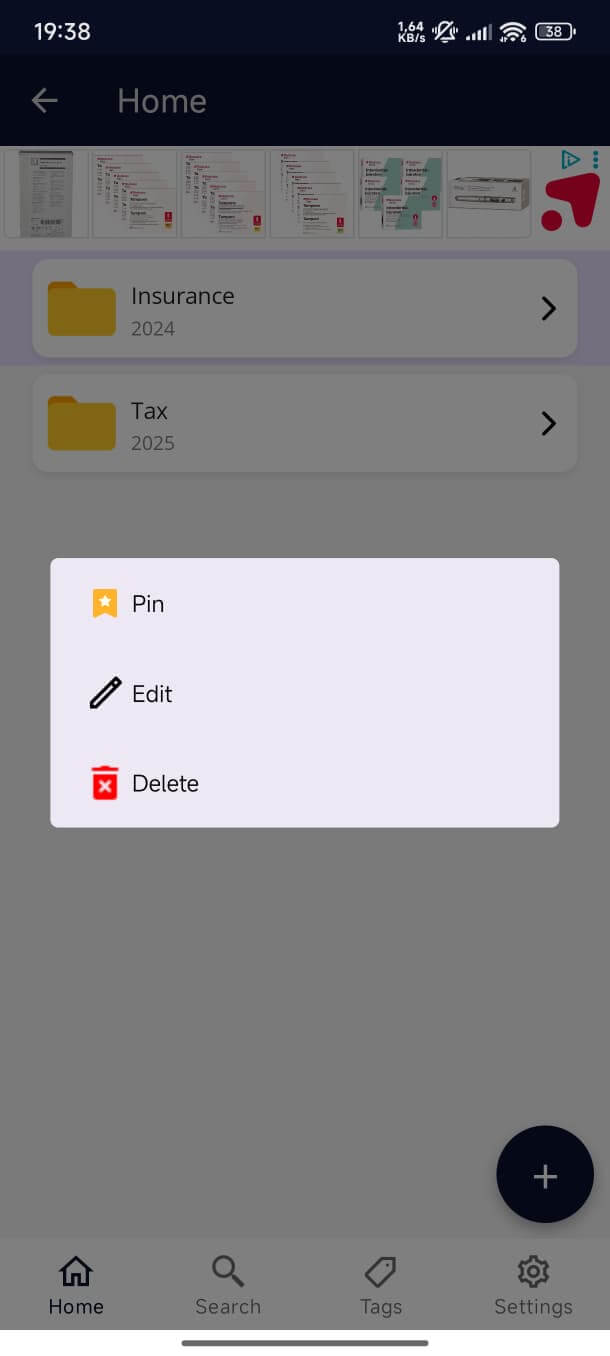Long-tapping on a folder provides you with the option to either pin, rename or delete it.
